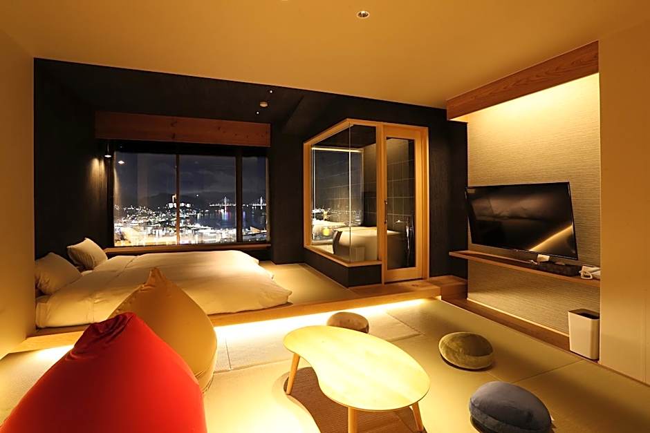 The quadruple room includes a private bathroom, well-fitted with a bath, a shower, a bidet, a hairdryer and slippers. The air-conditioned quadruple room features a flat-screen TV, tatami, an electric kettle and yukata. The unit has 2 beds and 2 futons.